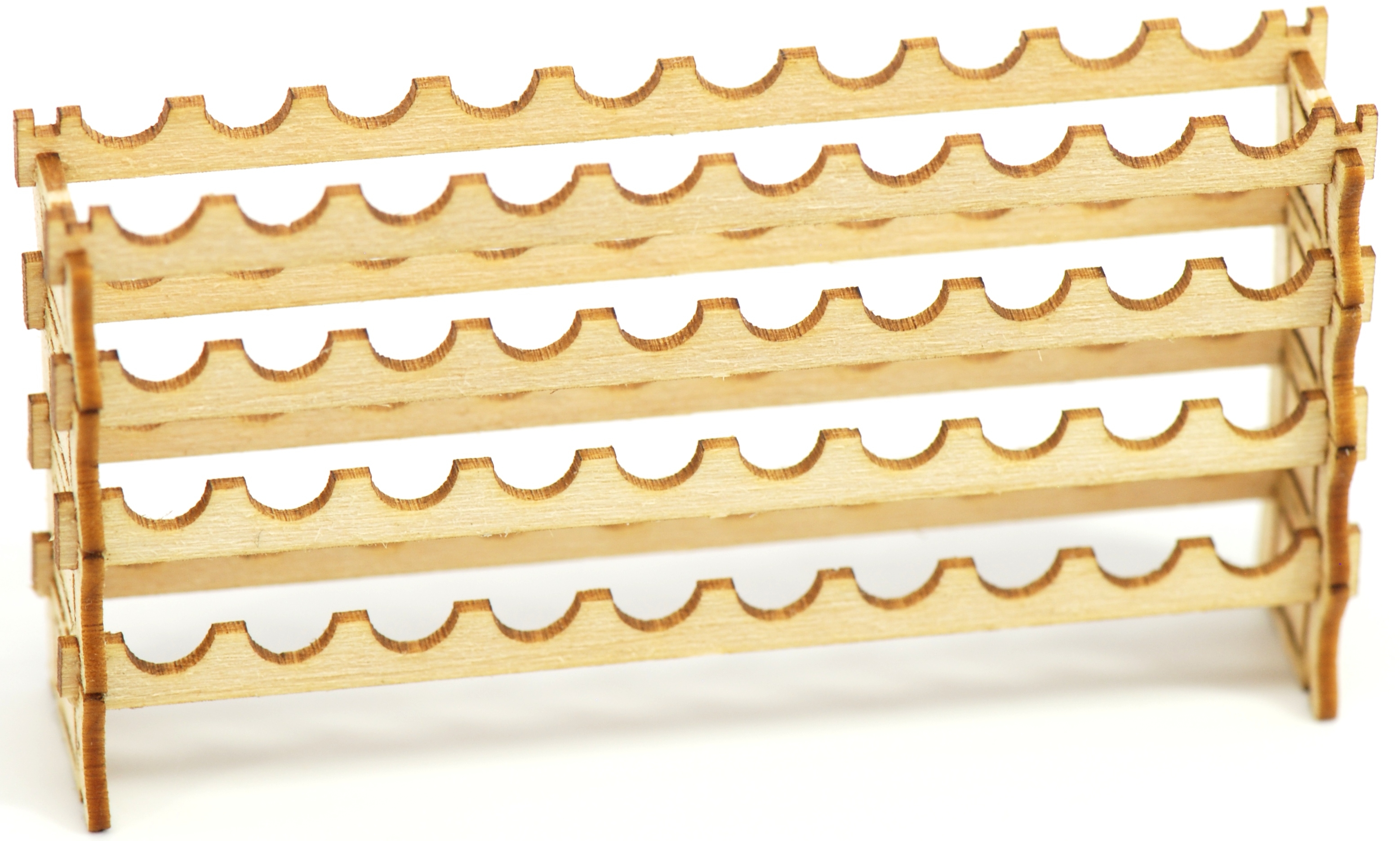 This is a 4 layered wine rack kit that cradles the wine bottles. It's very cleaver design gives you the opportunity to add layers! Make it as tall as you need for your wine cellar. It's very simple to put together.