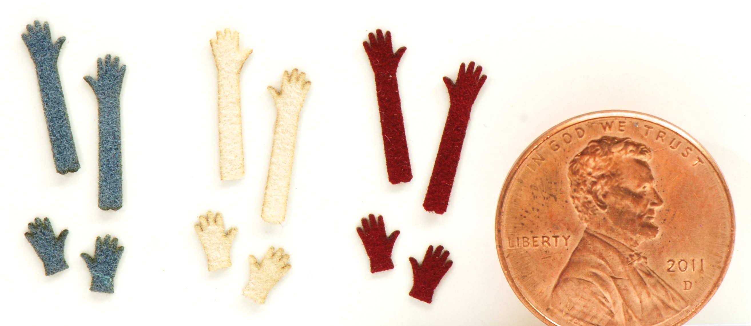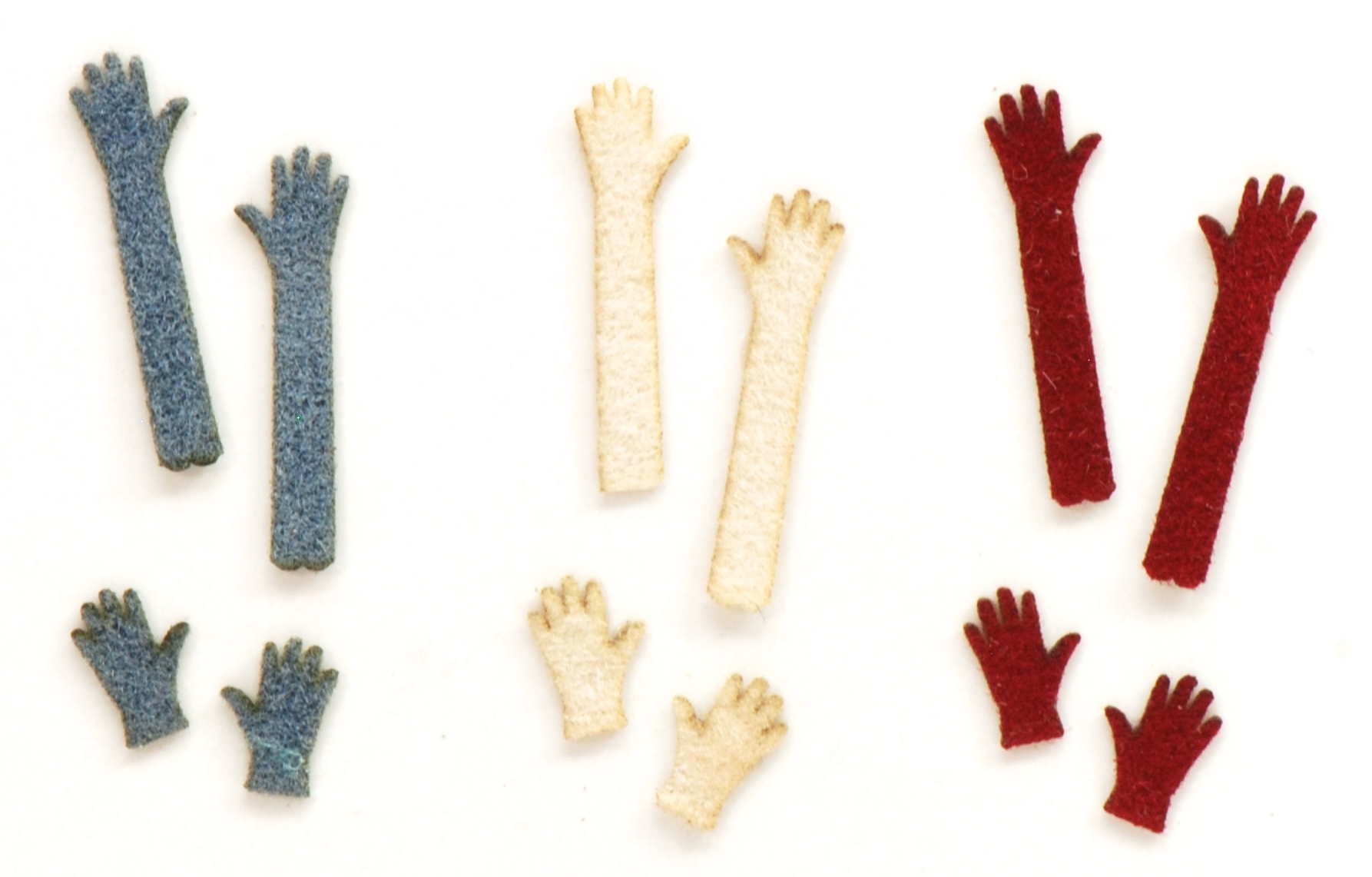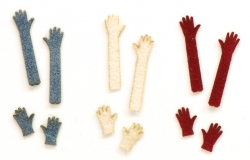 These are beautifully laser cut ladies gloves out of swede covered super thin paper. They are perfect for your miniature 1:48 scene! Ladies shop, Wedding and so many more ideas!