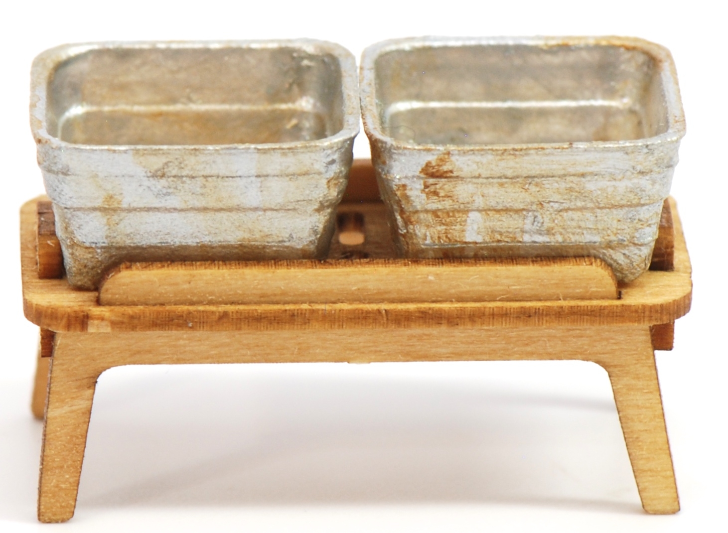 This is a really funs et of 2 wash tubs with a wood stand. You can use them for laundry or planters!