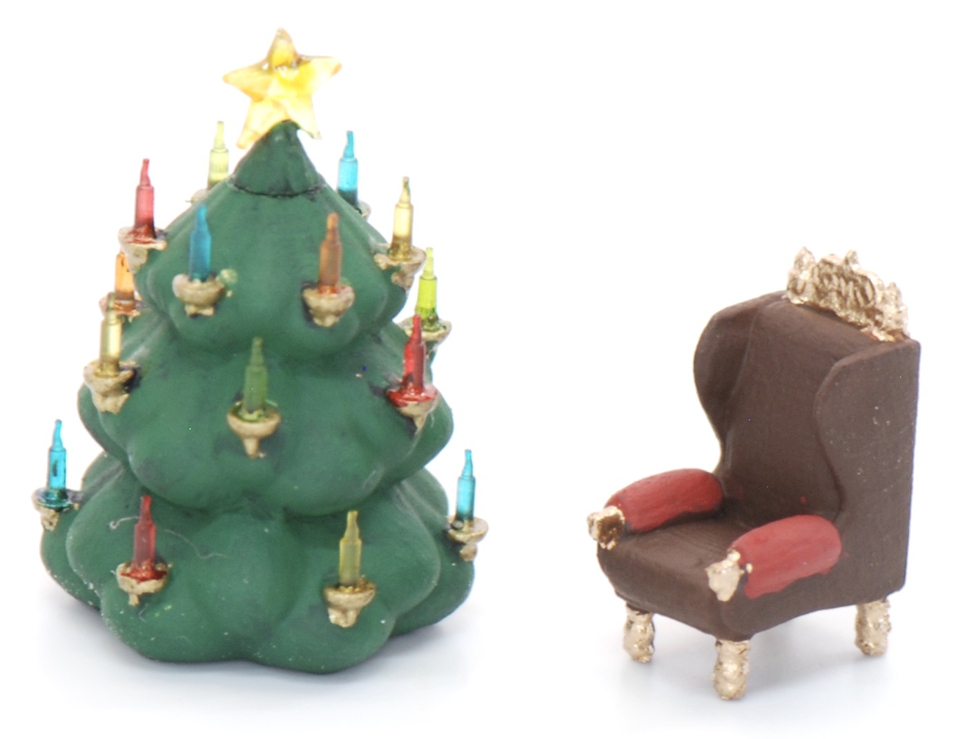 This fun new Christmas Tree kit is 3D printed as one piece. All you do is paint! It comes with a LED, Battery pack, battery and tree skirt! Super cute for your 1:48, 1:24 and 1:12 scene! You can use this as an actually Christmas Tree in 1:48 or even a table top display in 1:24 and 1:12 scales!