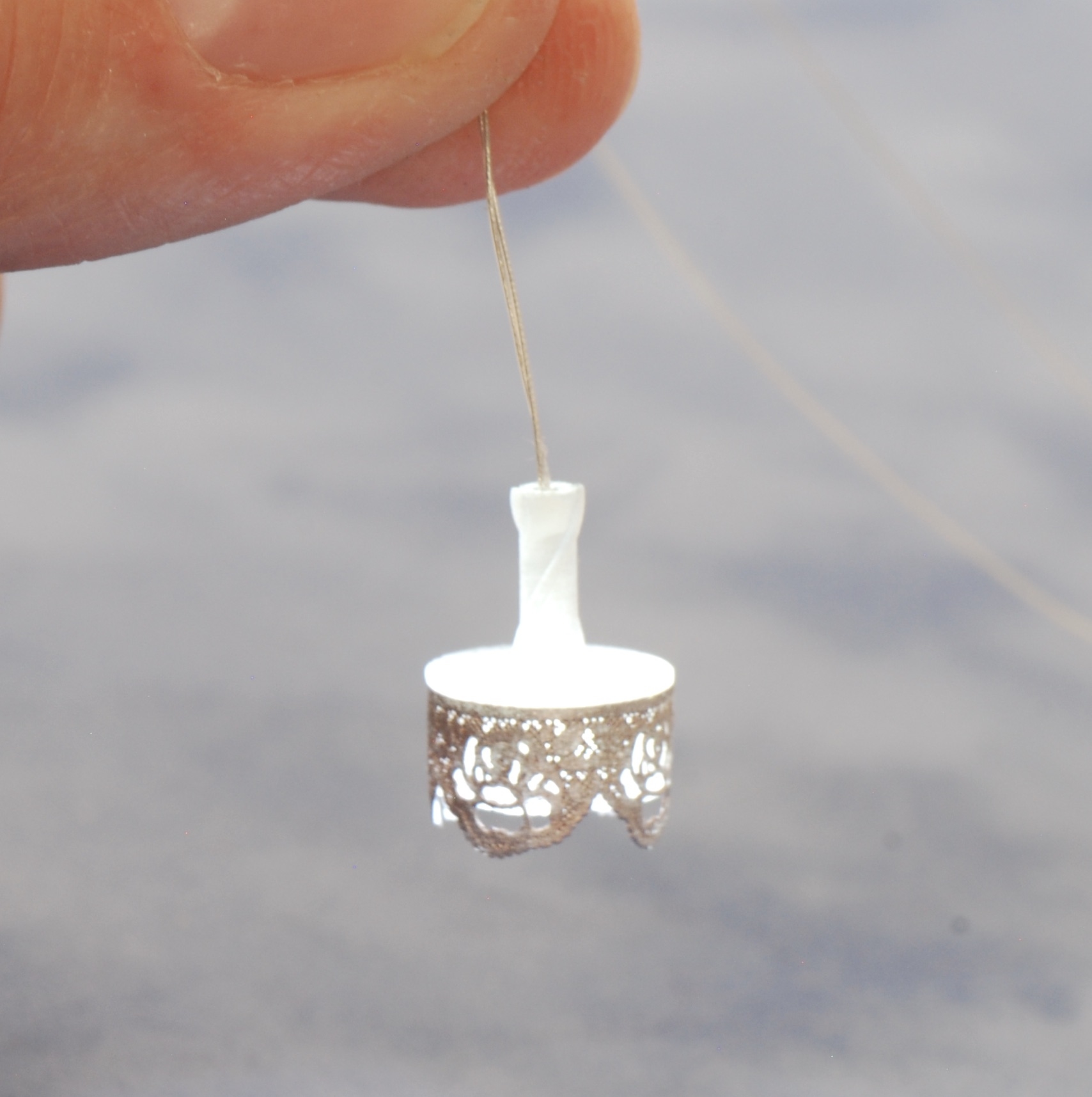 This is a wonderful new Chandelier for 1:48 miniatures. It's beautifully 3D printed and comes with a piece of rose laser lace to wrap around the chandelier. You can buy this kit with or without a lighting kit. The laser lace can be easily painted with alcohol inks and the photo shows it painted with Rose Gold Alcohol ink. It came out stunning!