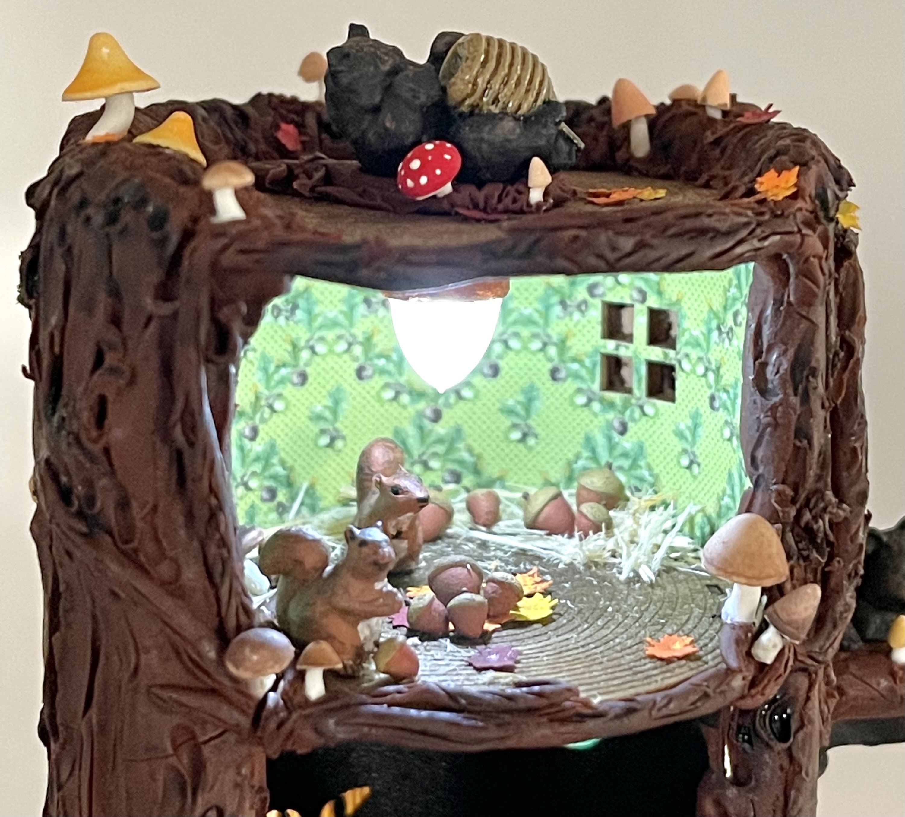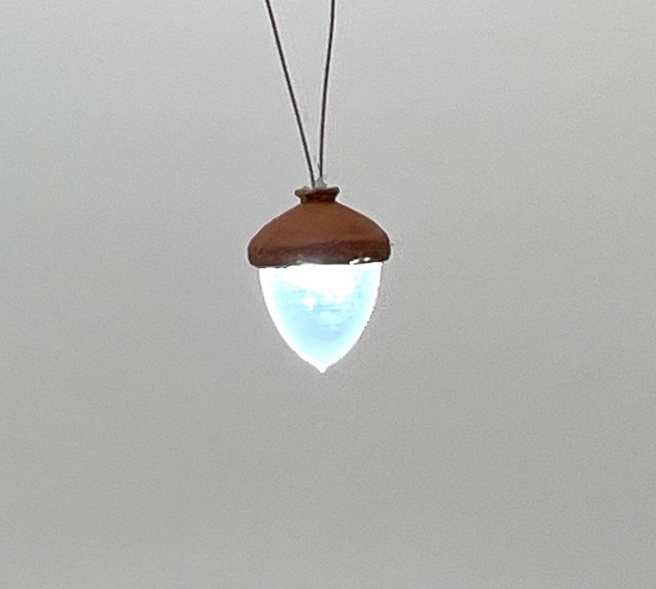 This fun little Chandelier is in the shape of an Acorn. It comes with easy painting and assembly directions. It also comes with the LED, battery pack and battery to light it up!