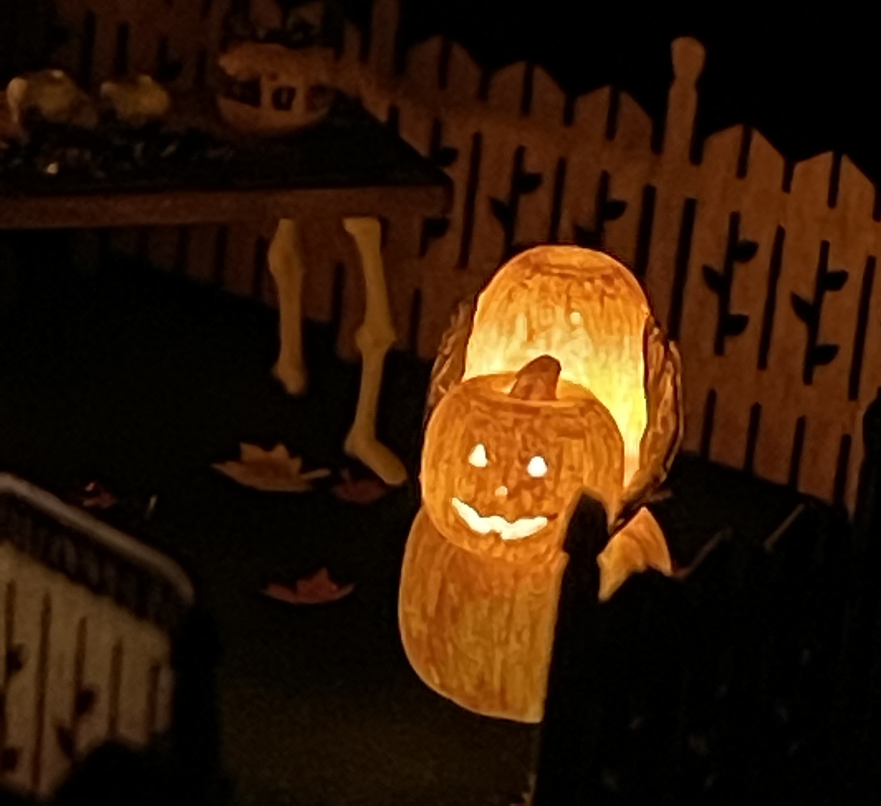 These spooky Jack-O-Lanterns are so much fun to lite and use in a scene. They come with holes already in the base and you can get LEDS to lit them with. These only come with the LEDS if you choose that option. All these pumpkins are 3D printed and just need painted.