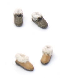 You get to choose which set of slippers you want or just get both! You can get the 3D printed Uggs or the L.L. Bean Slippers. They come with directions on how to paint and apply the soft fluff! Fun for any miniature scene.