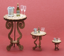 This Champagne Celebration kit is elegant, yet easy to assemble and paint. This kit comes with a table laser cut out of basswood, beautiful fancy doily, a 3D printed Champagne bottle, ice bucket and Champagne flutes, and ice for your bucket. Detailed directions and photos will come with this kit on how to assemble your table, paint your bottle and bucket and apply the label to your bottle. Don’t want to assemble it yourself? That’s ok, we are offering this celebration scene already completed as well, so all you have to do is glue it into your scene!