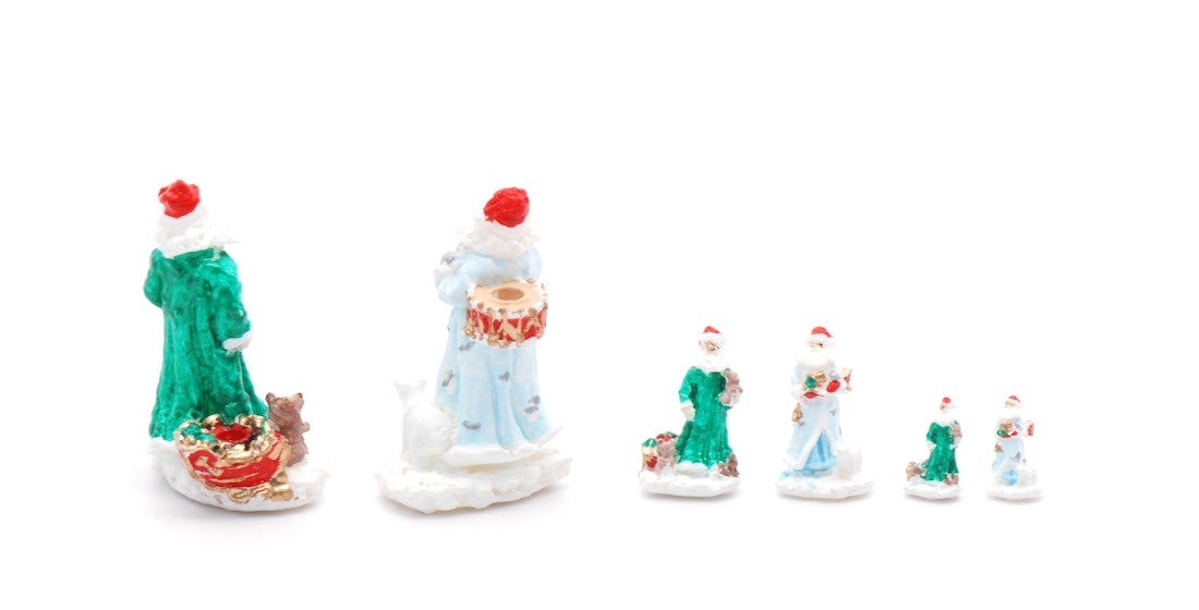 These adorable Father Christmas Statues are amazingly detailed! One has a tiny polar bear walking with him while his arms are full of presents and on his back he carries a drum.