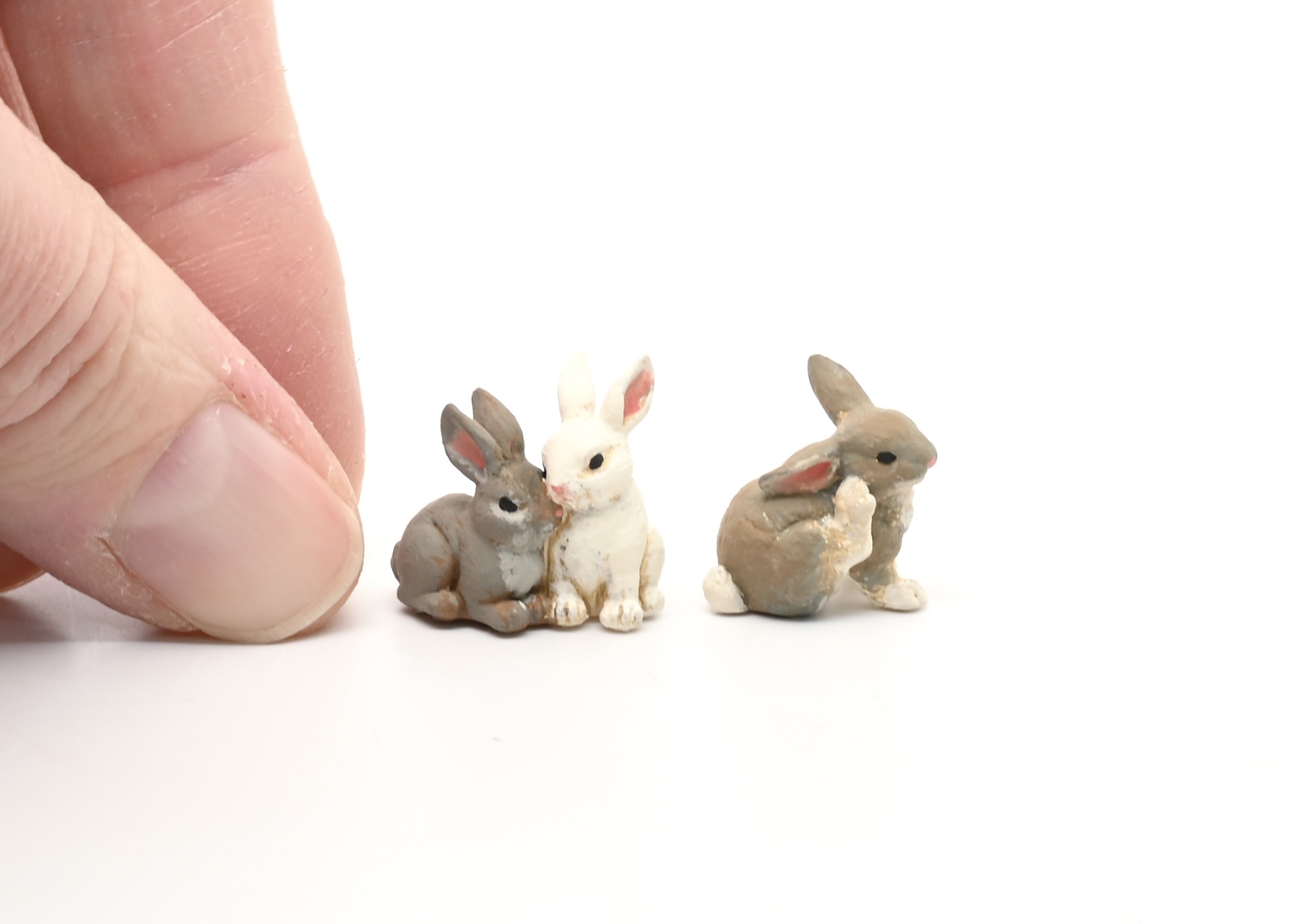 This is an adorable new set of bunnies. Two are connected in a snuggled up position. There is also a scratching one as well! You get 3 in this set.