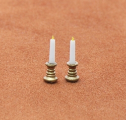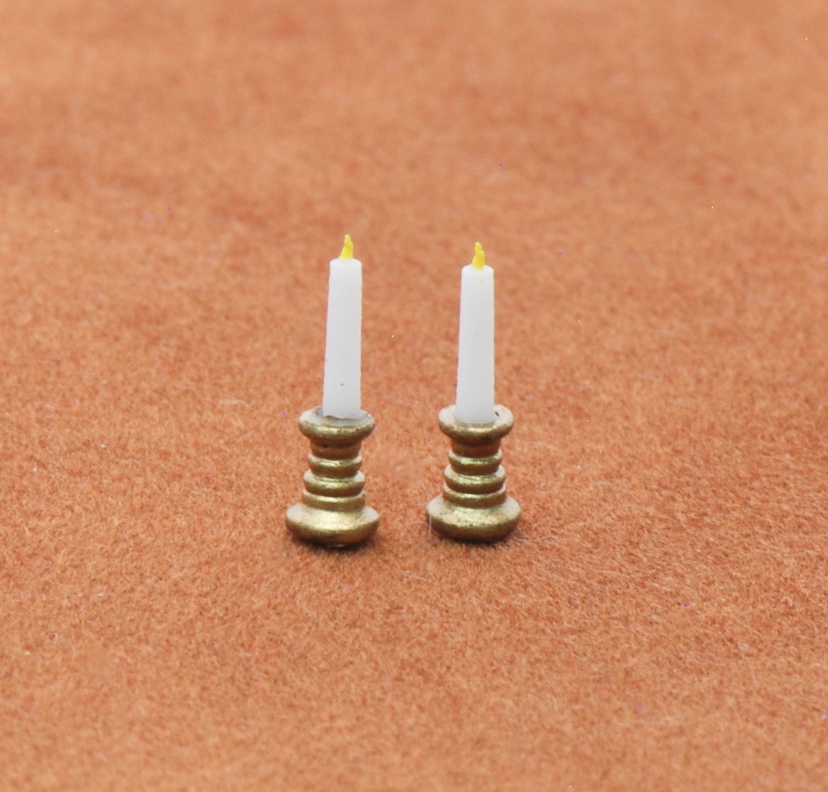 This is a set of 3D printed brass candles sticks with candles. The candles come in a set of 3 in case one is lost or broken. They don't even need to be painted, just the wick. The brass candle sticks come on a support making them easy to paint. I used the Brass Leaf Paint I sell here on the web site. Works beautifully.