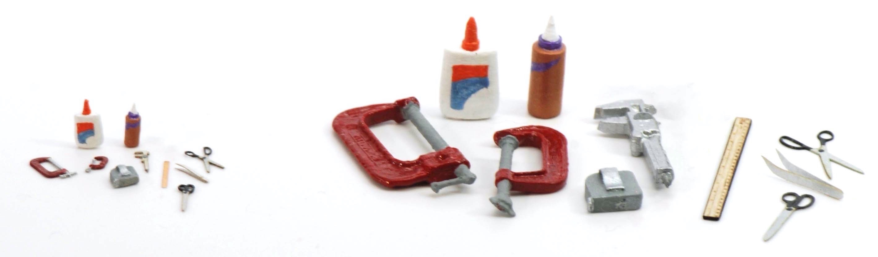 This is a wonderful set of tools! Some are 3D printed and some are laser cut out of high quality paper. You can get this set in 3 scales. So choose your scale and have fun using these in your miniature scenes!