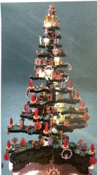 This tree is amazing! It's a large tree that holds dozens of tiny Christmas ornaments, houses and decorations. You can even light it if you choose, but this kit does not come with lighting. It comes with all the candles and kits you can see on the tree. Directions do come with this kit on how to assemble the tree part.