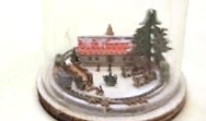 This is a wonderful little train set that comes with 5 more houses to make a village. This is the only picture I could get right now, but it would fit inside a tiny glass done as the round track is a tiny bit over 3/4" wide. It's a lovely set.