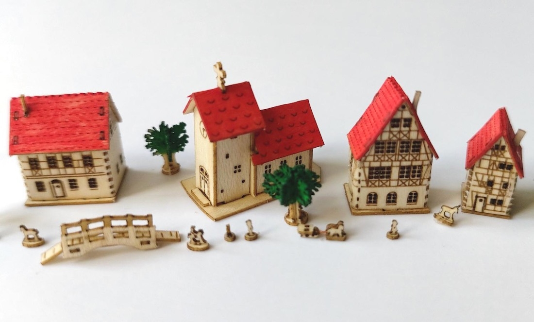 This is a wonderful set of 4 house kits. They are a little bigger in 1:1000 scale and not as tiny as most of the 1:2000 scales ones I sell.