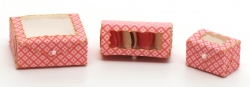 These beautiful Macaroon boxes are 1:12 sets and specially designed to fit my Macaroon mold but can be used for may other things as well. They come flat and you fold them up and glue and they also come with a film sheet that makes a cute box window.