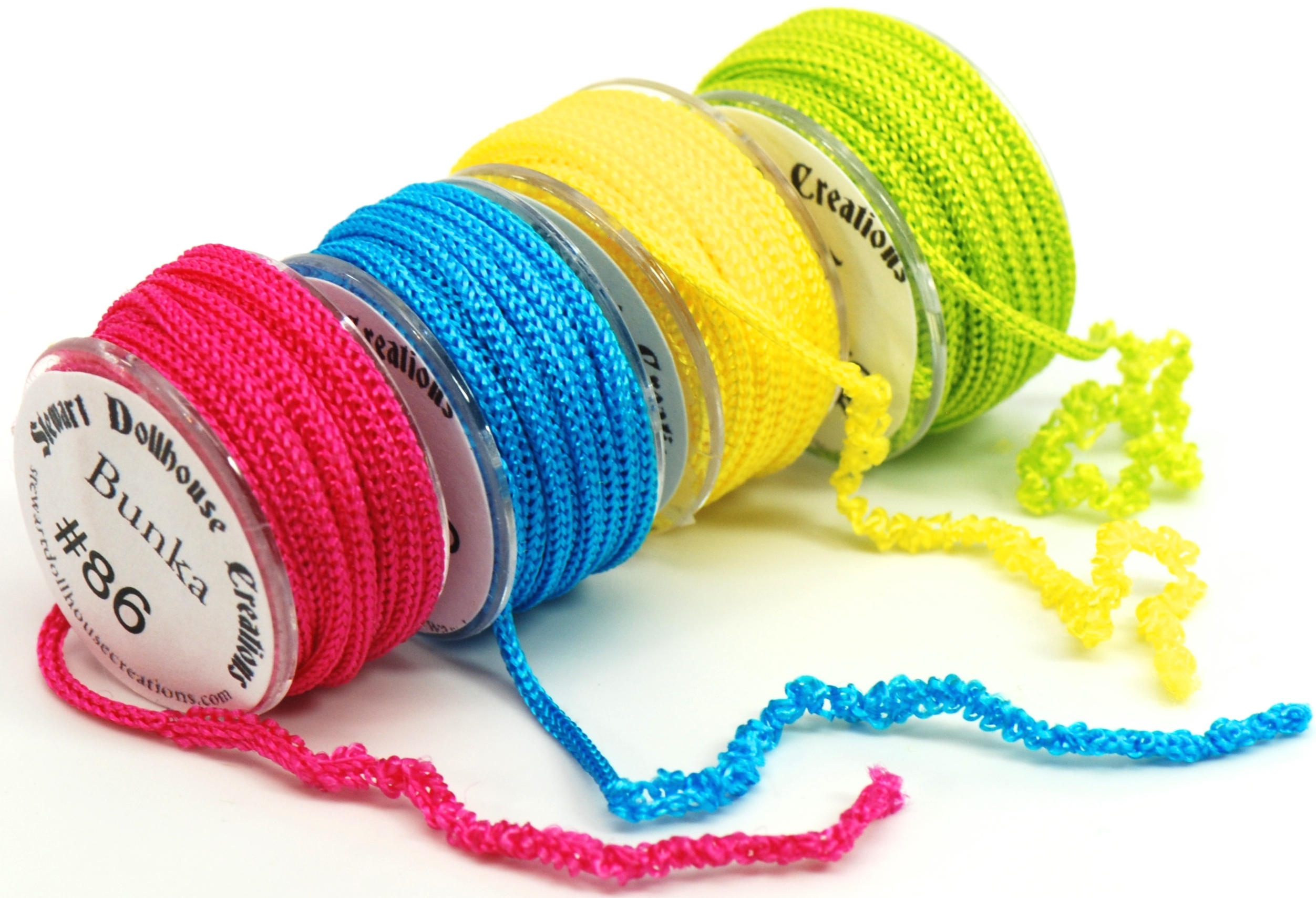 If you haven't used Bunka before it's amazing stuff. You pull the bottom of the thread to make a super cute squiggly thread. Can be used for dolls hair, clown hair, lace, edging on dresses, hats and so many more applications!