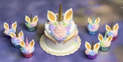 This is a wonderful kit that teaches you how to make sliceable cakes! There are unicorn 3D printed horns in your kit to paint. All the tools and goodies to learn how to make the cakes, unicorn ears and to decorate with frosting.