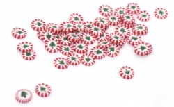 These are very cute, tiny candies with an Evergreen tree in the middle. This set comes with 20 pieces in a tiny baggie. Great to help decorate any pastry plate! The candies may vary slightly from the photo. These are designed for 1:12 candies but can be used in all scales depending on if you want cookies in 1:48 or something else.