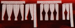 These are delicately intricate and thin 1:48 Lace curtains. The pattern is Heart you choose your style. They are laser cut out of a high quality white paper and are designed to be trimmed at the top to make shorter and the valance can be trimmed on the sides as well.
