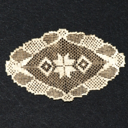 This is a replica Laser cut Doily from an original full size antique Doily. These doilies are all very intricate, and look almost as if they are lace. The photo just can't do it justice. It is cut on an off white antique colored paper. This is a 1 1/4" by 3/4" doily, used for any food or table decoration.