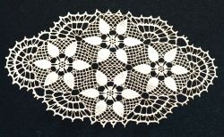 This is a large replica Laser cut Doily from an original full size antique Doily. These doilies are all very intricate, and look almost as if they are lace. The photo just can't do it justice. It is cut on an off white antique colored paper. This is a 4" by 2 1/4" doily, used for any food or table decoration.