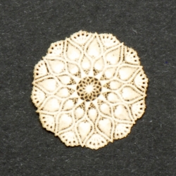 This is a replica Laser cut Doily from an original full size antique Doily. These doilies are all very intricate, and look almost as if they are lace. The photo just can't do it justice. It is cut on an off white antique colored paper. This is a 23/32" (18.7mm) doily, used for any food or table decoration.