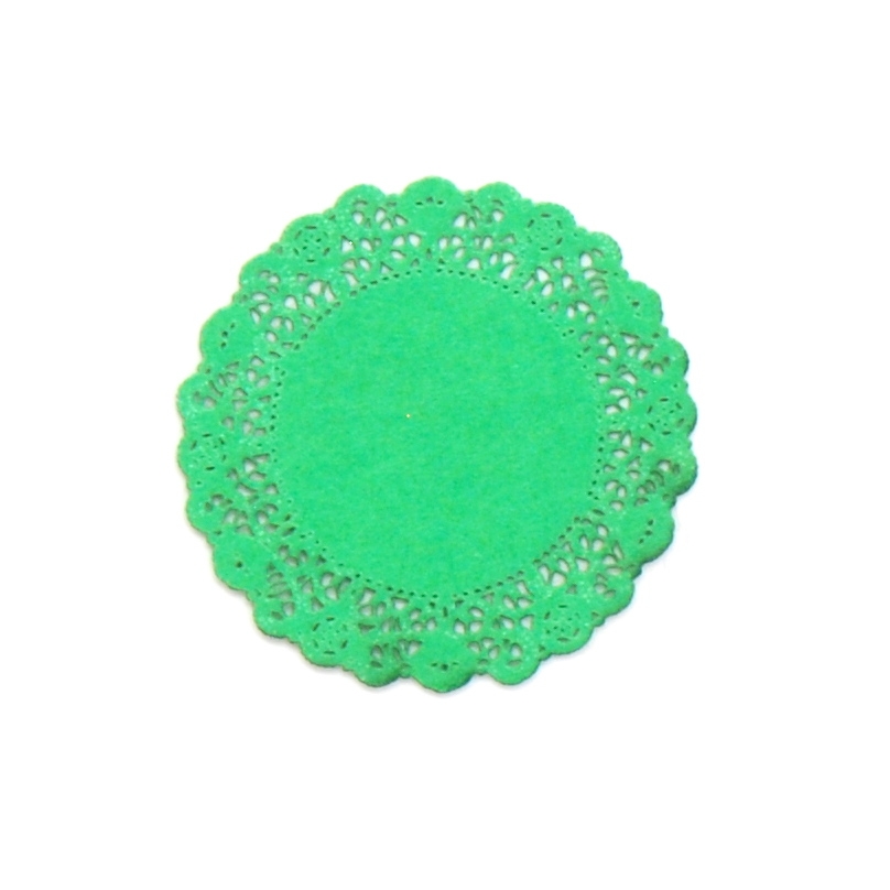 This is a replica Laser cut Doily from an original full size antique Doily. These doilies are all very intricate, and look almost as if they are lace. The photo just can't do it justice. It is cut on a green colored paper. This is a 13/16" (21mm) round Doily, used for any food or table decoration.