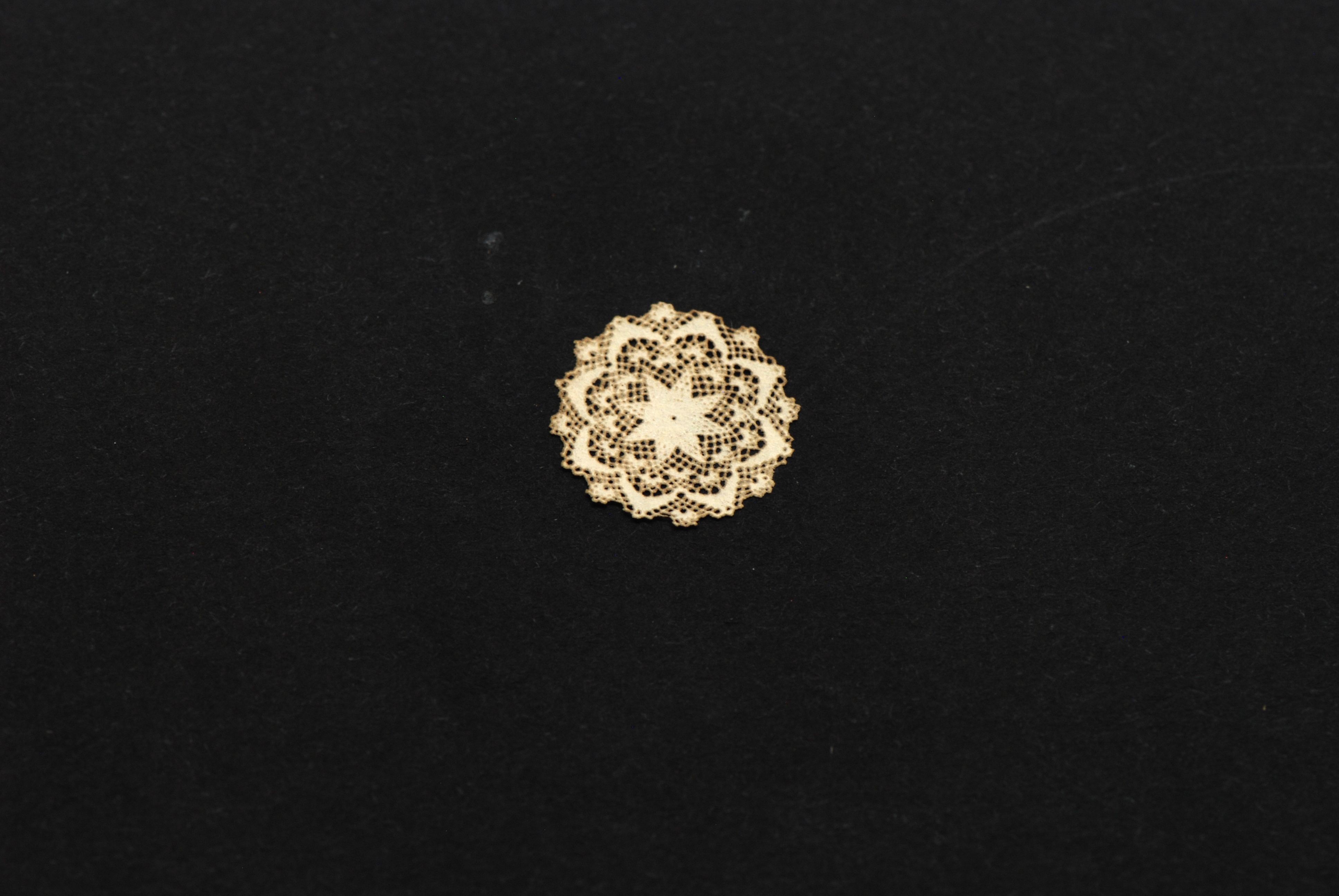 This is a replica Laser cut Doily from an original full size antique Doily. These doilies are all very intricate, and look almost as if they are lace. The photo just can't do it justice. It is cut on an off white antique colored paper. This is a 1/2" round Doily, used for any food or table decoration.