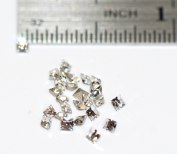 These are 10 tiny 2mm Swarovski Square Crystals. They are a clear, silver foiled pointy backs.