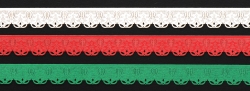You can choose between green, red or white lace trim. The white can be colored with alcohol markers to bring out the design you want highlighted.