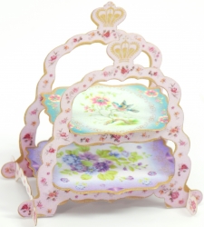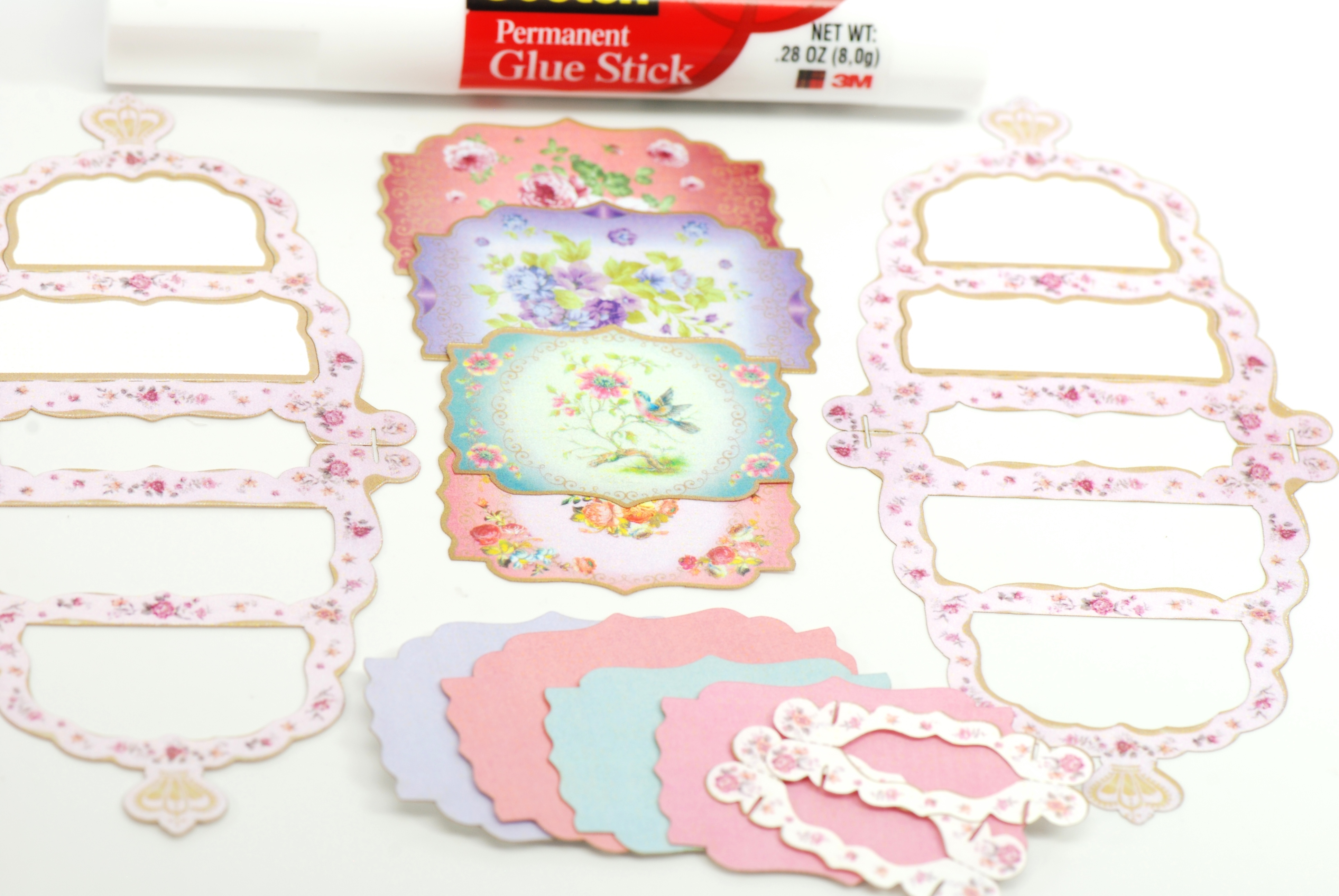 This is a beautifully easy kit to put together. You just use a glue stick and a tiny bit of tacky glue. It's made out of paper and is very sturdy. All the platters come with pastel colored thick baker papers. The really fun thing is this come with 4 platters! To mix and match... You choose what to use and build your pastry tower. It's a lot of fun!