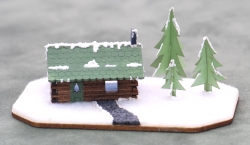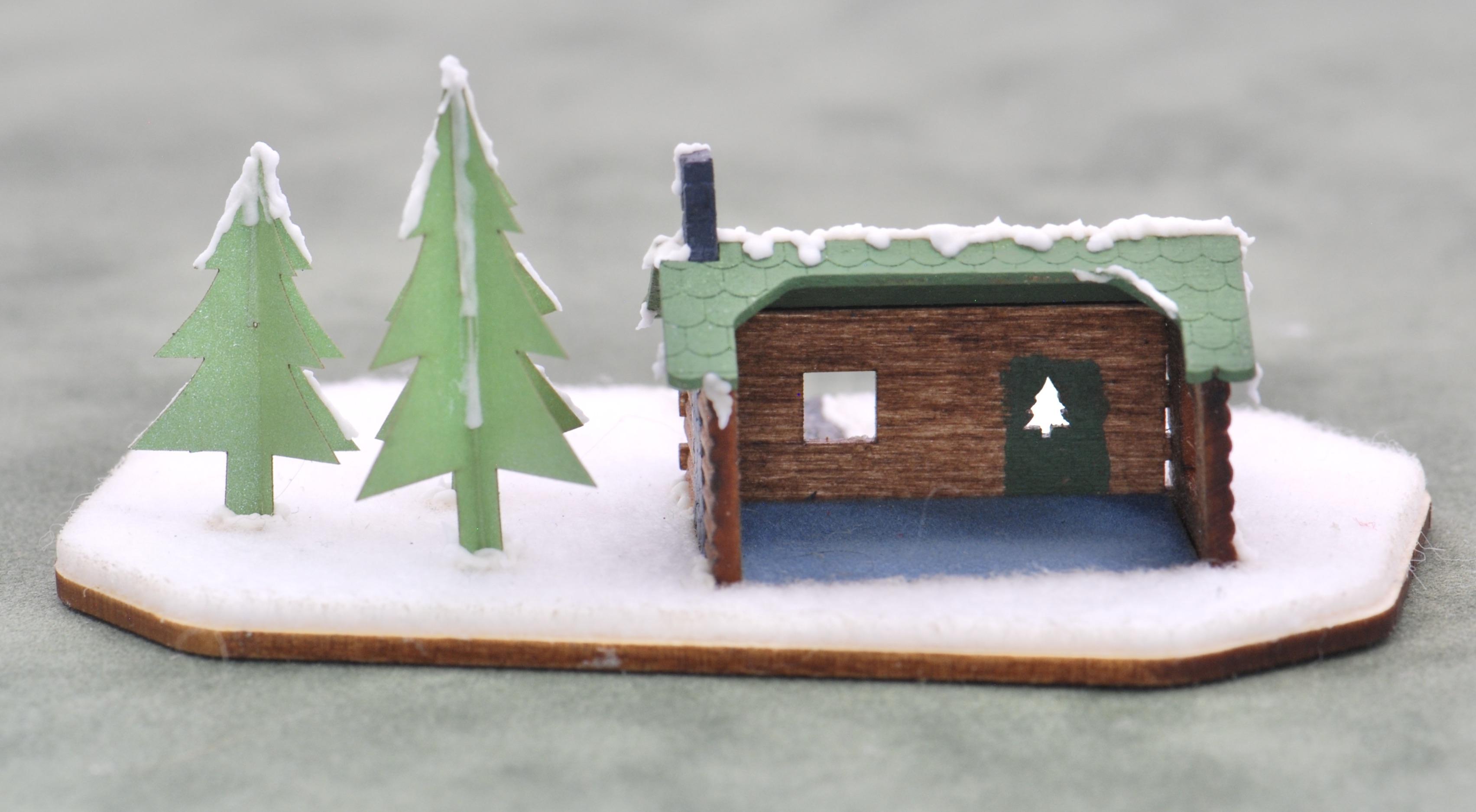 This is a very cute 1:144 cabin that comes with a base, 3 tree kits and laser cut snow and walkway for your base. This kit was designed by Sophia and her dad.