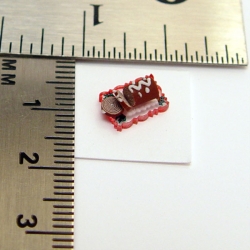 This is a 1:48 scale Chocolate roll cake. It is hand crafted from polymer clay and has 2 slices. It comes on a hand painted hard plastic platter that looks like glass up close. There are holly leaves and berries painted in the corners of the cake plate. Each cake is unique and life like. A beautiful addition to any Tiny Scene!