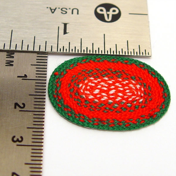 This is a very intricate and tiny 1:48 scale rug. It is hand braided and wound using thread. A wonderful addition to your Christmas scene or home.