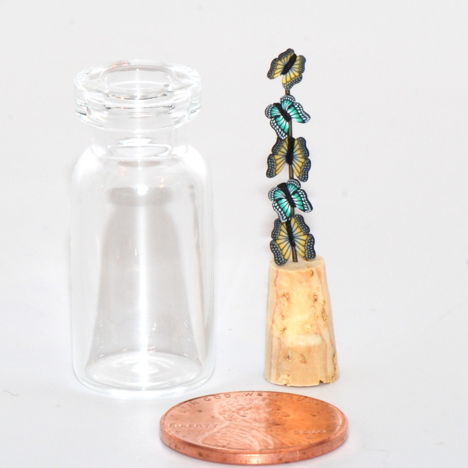 These are beautiful tiny butterflies made from canes. There are 5 of them lightly attached to the wire in the jar and just pop right off with gentle persuasion. I use these on my cakes and cupcakes, but can be used for anything in miniature. Gardens, terrariums, food and decoration. Use your imagination.
