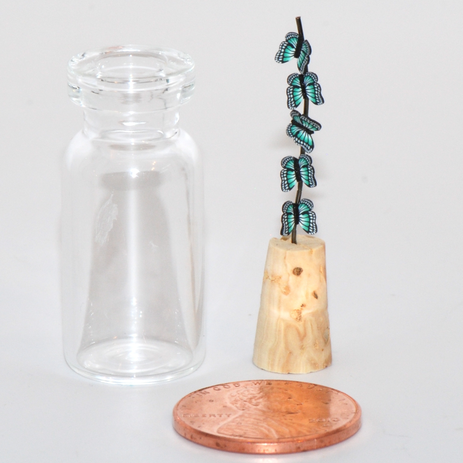 These are beautiful tiny butterflies made from canes. There are 5 of them lightly attached to the wire in the jar and just pop right off with gentle persuasion. I use these on my cakes and cupcakes, but can be used for anything in miniature. Gardens, terrariums, food and decoration. Use your imagination.