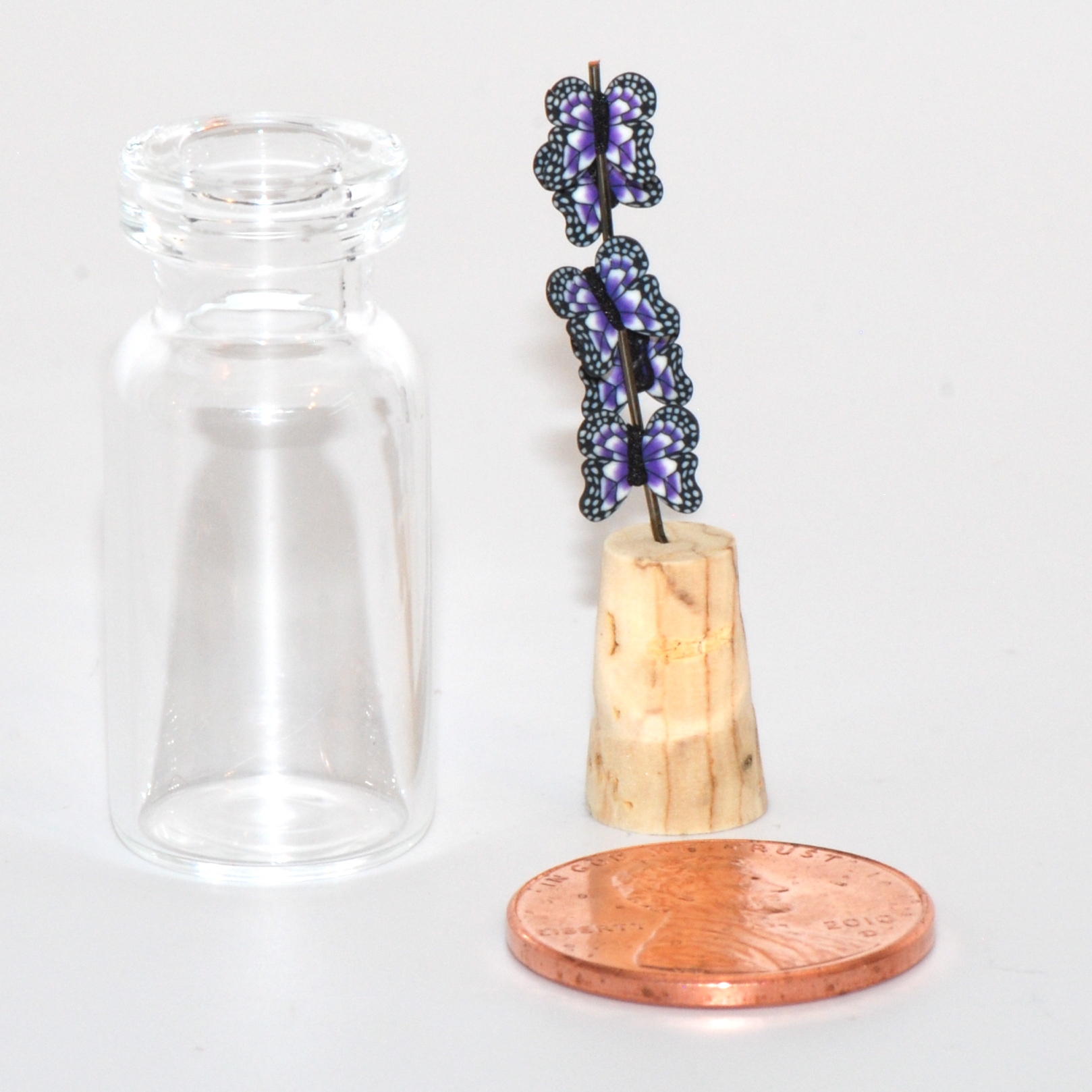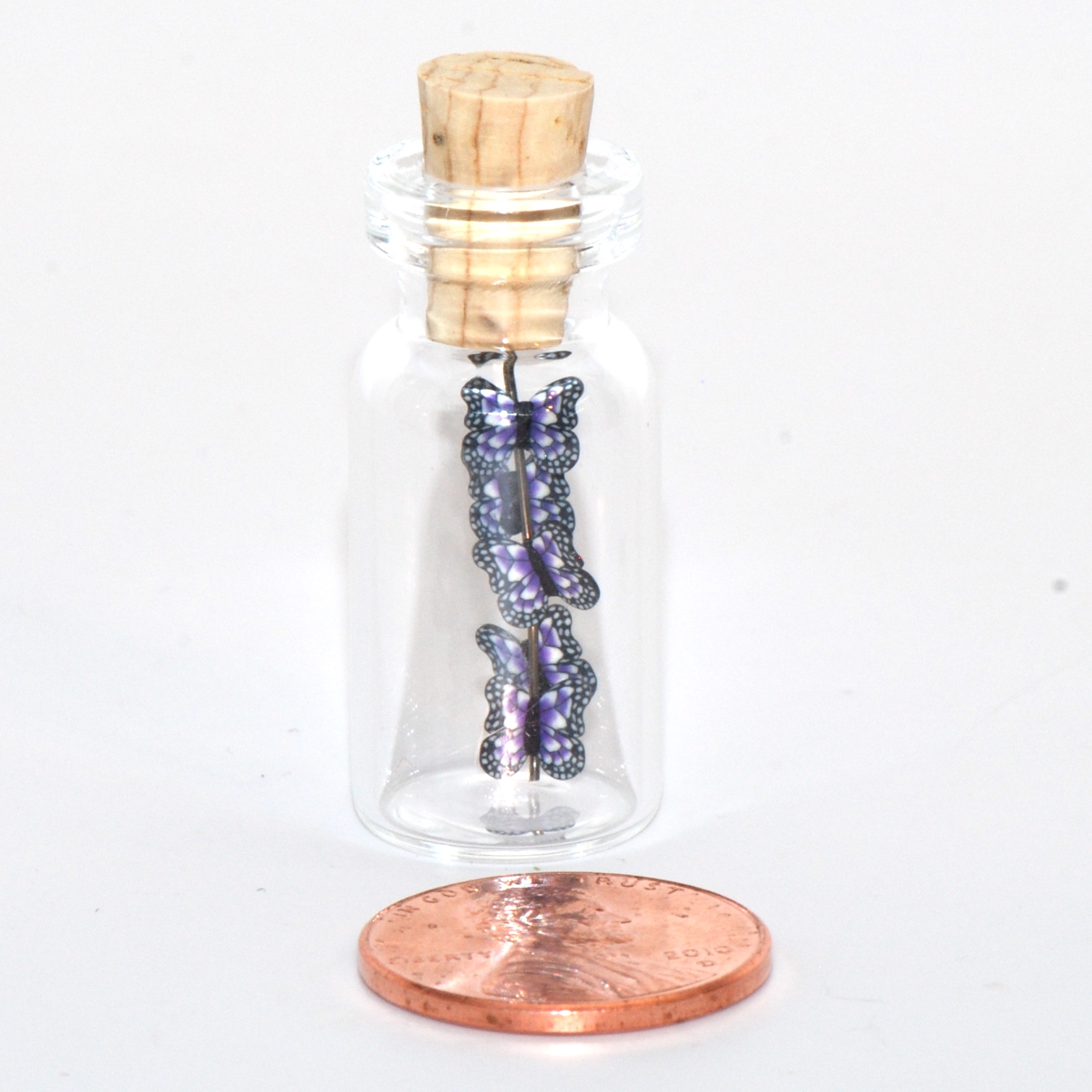 These are beautiful tiny butterflies made from canes. There are 5 of them lightly attached to the wire in the jar and just pop right off with gentle persuasion. I use these on my cakes and cupcakes, but can be used for anything in miniature. Gardens, terrariums, food and decoration. Use your imagination.