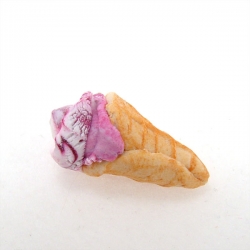 Miniature 1/12 scale double scoop raspberry swirl ice cream cone. This is a handcrafted ice cream cone made from polymer clay that is 5/8" long. The cone has a raised texture on the outside making it look very real and is done in an old-fashion style. The ice cream looks good enough to eat! This is a must have for any mini ice cream parlor or collection.