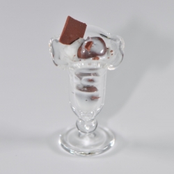 This is chocolate ice cream in a sundae dish covered in marshmallow sauce.