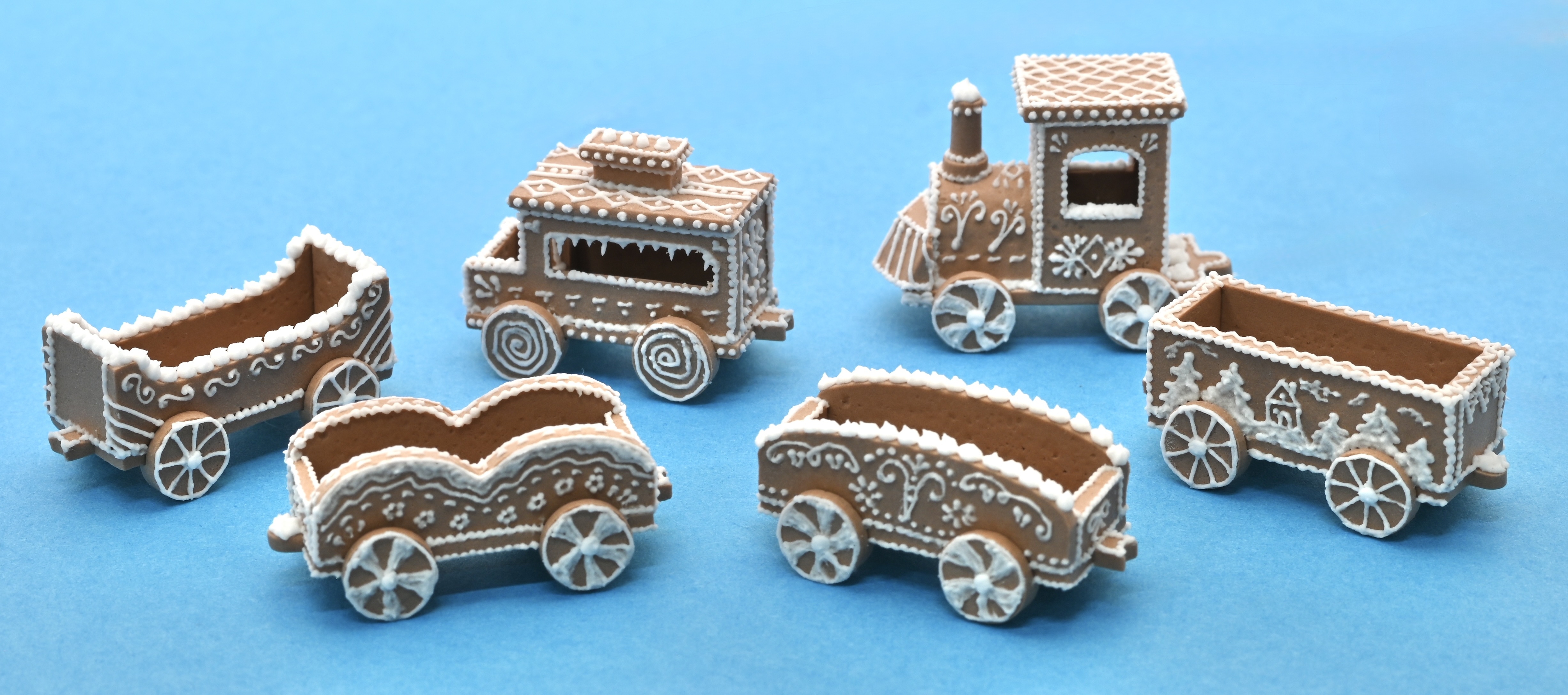 Brand new gingerbread train mold! There is a engine, 4 train cars and caboose, these are easy to make! There are 1:24 and 1:48 are a little more time consuming but so worth it!