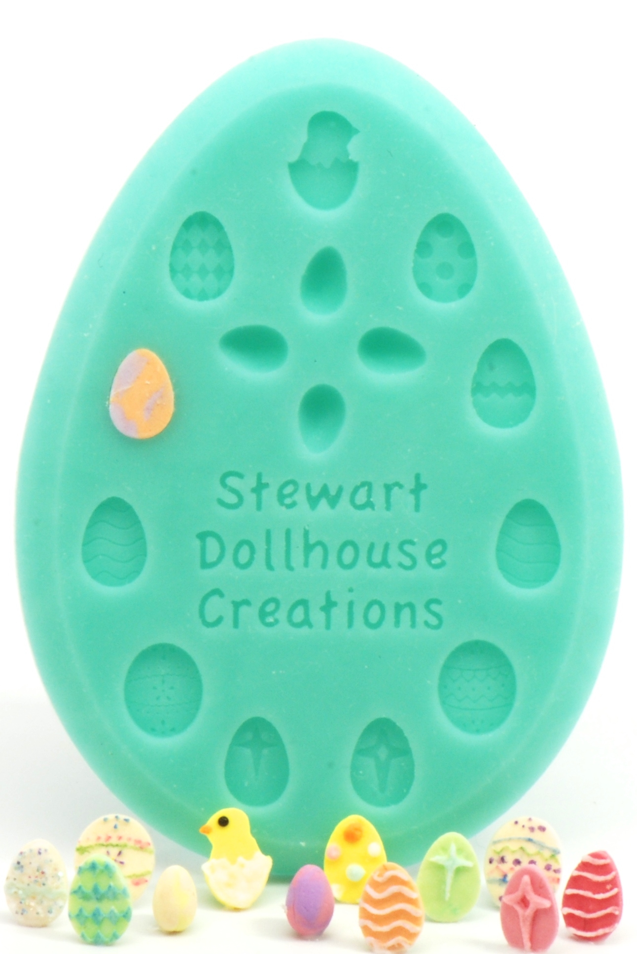 This is a wonderful Easter Egg mold! There is 11 different egg cookies with tiny intricate designs on them and one plain one to have fun with. Then there's molds to make 3 demential eggs for all your Easter baskets! The mold kit comes with pastel green, blue, yellow, pink, purple, beige and white! 7 colors to make your cookies out of!!