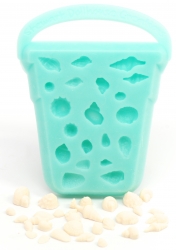 This is an amazing mold. You get this fun little bucket full of possibilities! It comes with 20 seashells! Some are smaller and bigger versions. There are 9 different seashell shapes. This mold opens up a world of possibilities! Chocolates, soaps, seashells for your seashore. Decorating your homes and fondant seashells for foods and cakes! So may ideas!