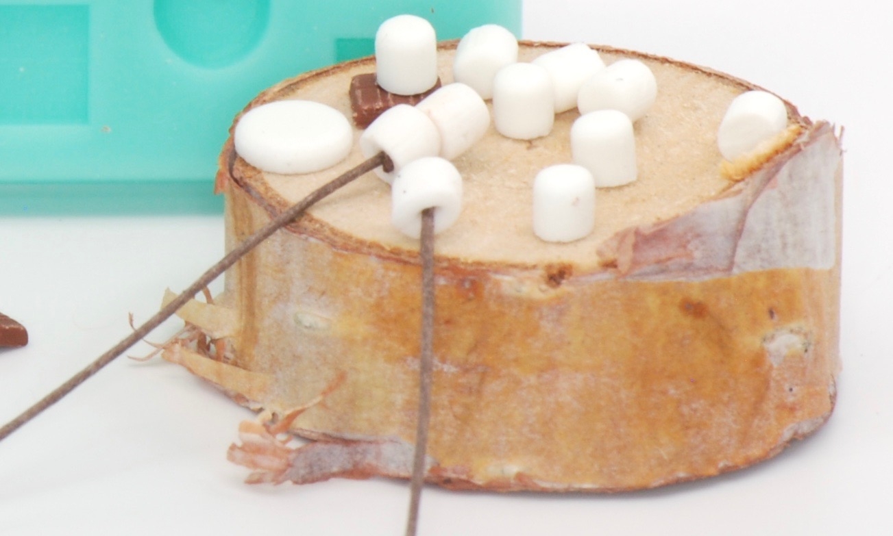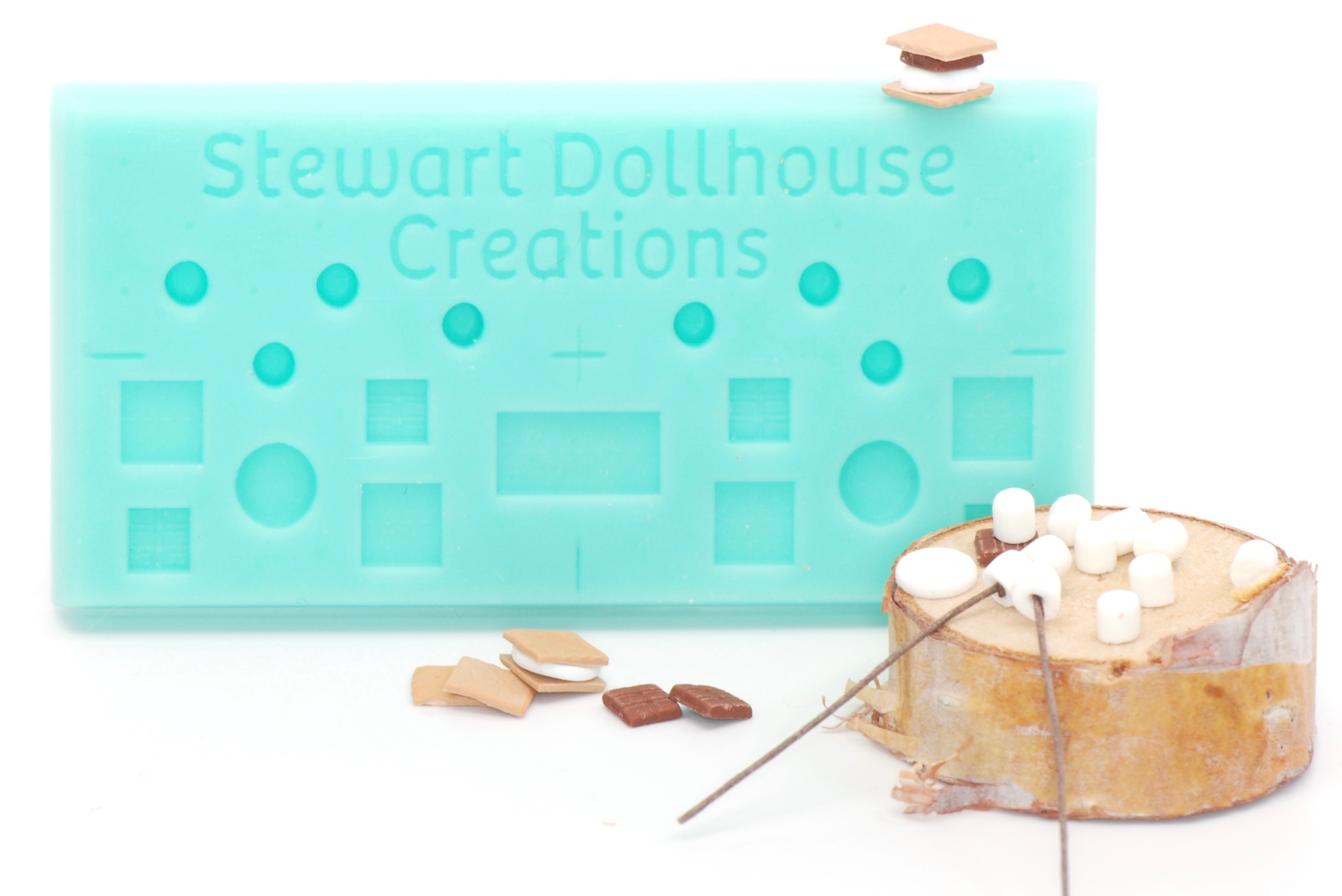 This is wonderful mold to make everything you need for miniature S'mores! It is so easy to use and comes with clay to get you started and some coated wire to make the sticks. This mold can be baked in the oven and comes with detailed directions on how to make the these realistic S'mores and Marshmallows!