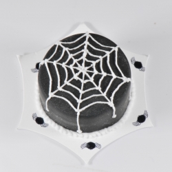 Miniature 1/12 scale cake. This is a handcrafted cake that is made with polymer clay. It is a 3/4" round cake. It has a very beautiful decorated spider web on top. It has 3 layers of vanilla cake with 2 layers of black frosting and 1 layer of black frosting on top. The cake can be sliced too, and you will receive directions on how to slice it if you so chose. Each one is unique and life-like. Sold individually.