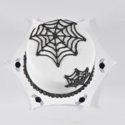 Miniature 1/12 scale cake. This is a handcrafted cake that is made with polymer clay. It is a 3/4" round cake. There are 2 very beautifully decorated spider webs on it. It has 3 layers of vanilla cake with 2 layers of black frosting and 1 layer of white frosting on top. The cake can be sliced too, and you will receive directions on how to slice it if you so chose. Each one is unique and life-like. Sold individually.