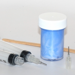 This is a special frosting I use with my cakes and cupcakes. It's water soluble and washes very easily off your hands, but will dry out with time, so just keep it covered when your not using it. It's a 1"x 2" bottle with a screw cap. This set comes with the frosting, 2 syringes, (one for the frosting and one to clean your tips out with) popsicle stick to put the frosting into the syringe with and 2 tips, a 20 gauge and a 22 gauge.