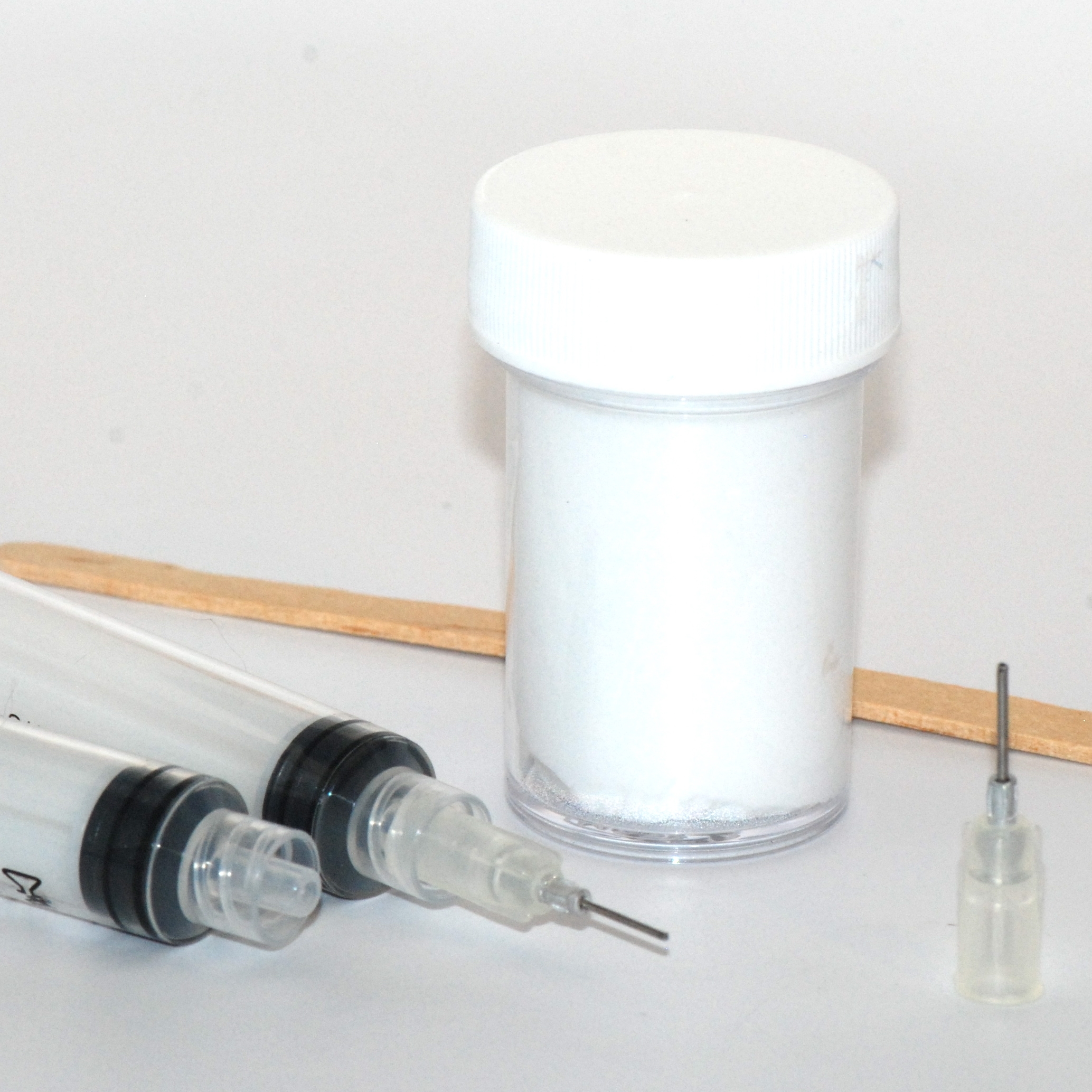 This is a special frosting I use with my cakes and cupcakes. It's water soluble and washes very easily off your hands, but will dry out with time, so just keep it covered when your not using it. It's a 1"x 2" bottle with a screw cap. This set comes with the frosting, 2 syringes, (one for the frosting and one to clean your tips out with) popsicle stick to put the frosting into the syringe with and 2 tips, a 20 gauge and a 22 gauge.
