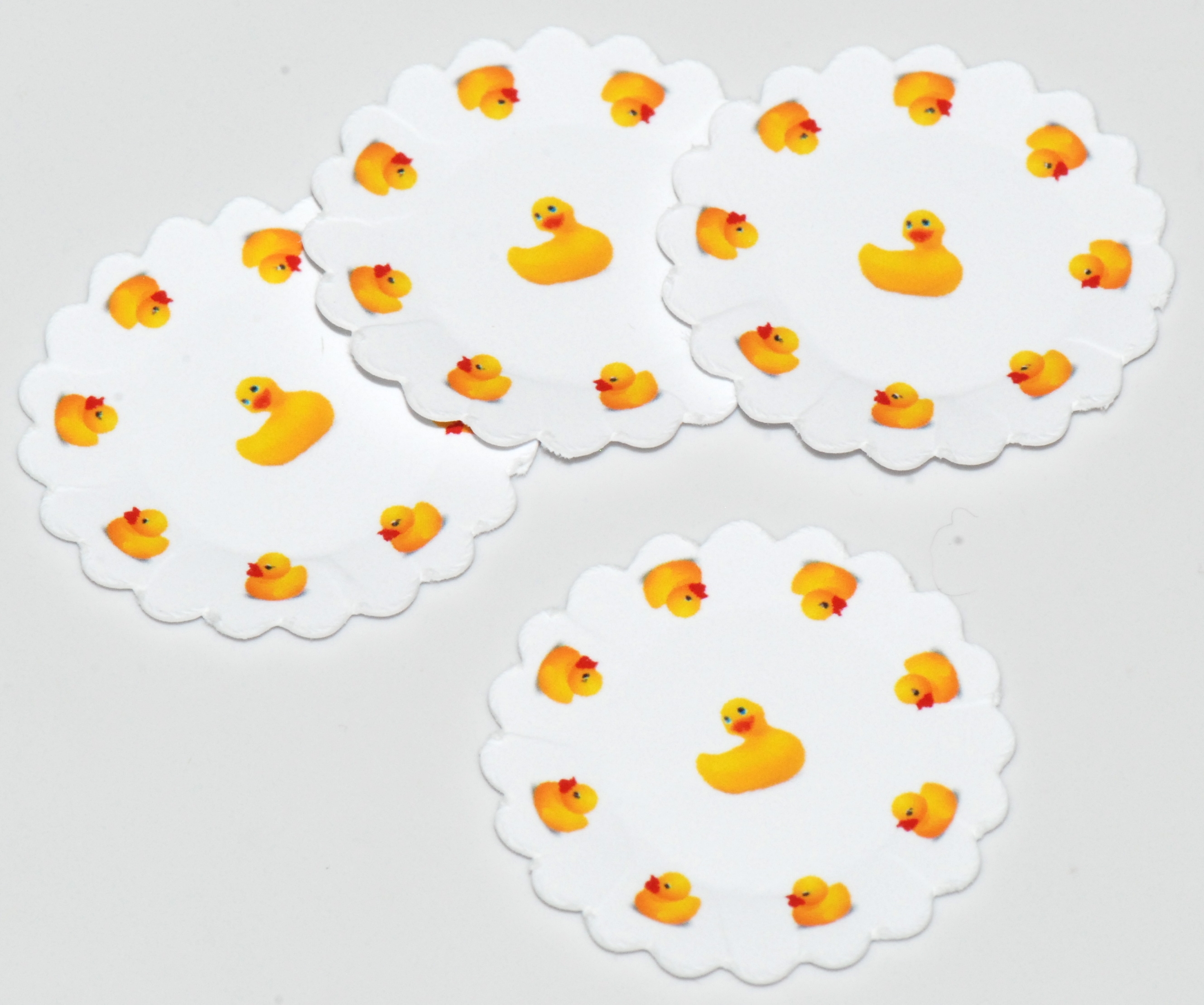 There are 4 paper plates in this set. They are 1" round. Great for cupcakes and cookies!
