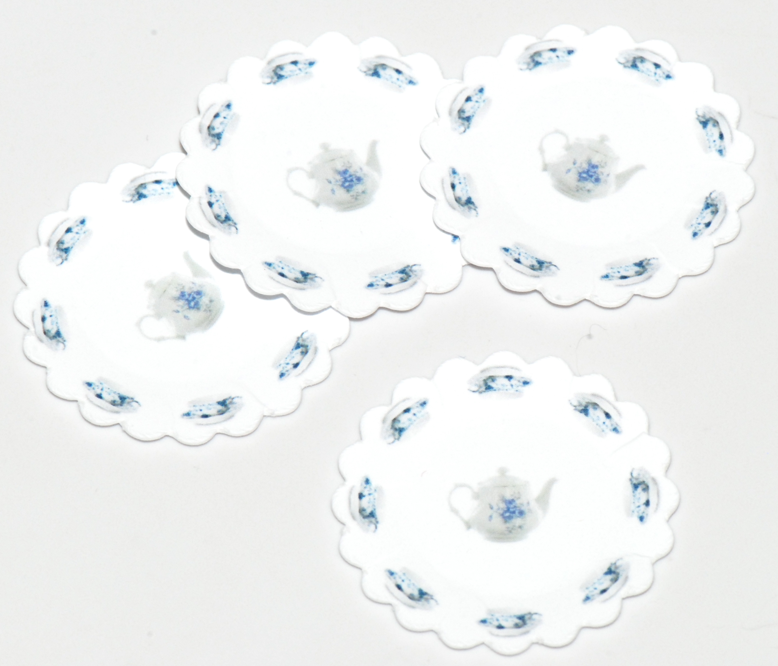 There are 4 paper plates in this set. They are 1" round. Great for cupcakes and cookies!