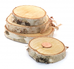 These super fun wood slices can be used for anything! Table tops in 1:12 or to display your minis. A wedding cake with cupcakes surrounding it would look stunning on these beautiful slices of nature. They do NOT have any holes in them.