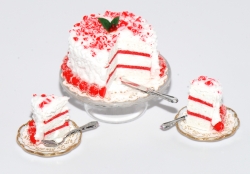 This is a Christmas cake with 3 layers of cake and 3 layers of frosting. It comes on a glass cake stand, decorated with candy cane chunks and red gum drops. This cake can be further sliced if you so choose. Directions come with purchase.
