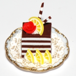 This is a beautiful 1:12 chocolate and vanilla pastry with marshmallow sauce and goodies on top. It comes on a small pastry plate.